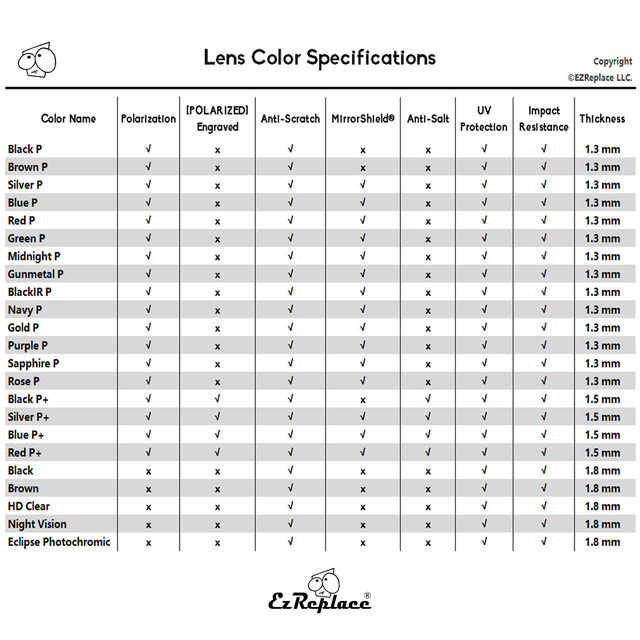 -·»Áî »ö»ó: °´°ü½Ä -Á¤¹Ð Àý´Ü ¹× ÀûÇÕ º¸Àå -60 ÀÏ ¸¸Á·µµ º¸Àå -Ç¥ÁØ ·»Áî ÀçÁú (¸ÅÀÏ »ç¿ëÇϱ⿡ °¡Àå ÀûÇÕ, Ãß°¡ °¡°Ý) -Á¦Á¶¾÷üÀÇ °áÇÔ¿¡ ´ëÇÑ 1 ³â º¸Áõ -UVA ¹× UVB ±¤¼±¿¡ ´ëÇÑ 100% UV400 º¸È£ -¾È°³ °¨¼Ò, ¹° ¹× ¸ÕÁö °ÝÅð -½ºÅ©·¡Ä¡ ¹æÁö ¹× ¸¶¸ð ¹æÁö ÀÌÁß ÇÏµå º¸È£ -Ãæ°Ý ¹æÁö: ANSI Z80.3, ISO 12312-1:2013 ¹× AS/NZS 1067:2003 Ç¥ÁØÀ» ÃæÁ·