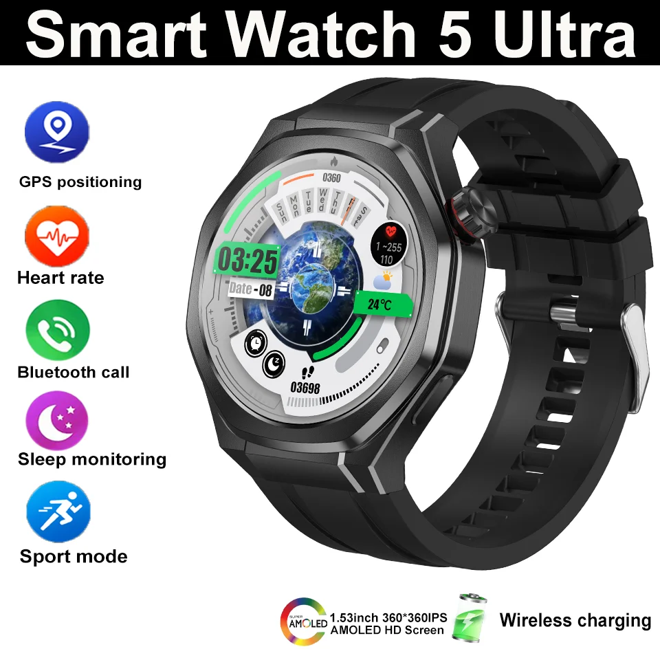 È¿þÀÌ ¿öÄ¡ 5 ¿ïÆ®¶ó GPS ½º¸¶Æ®¿öÄ¡ ³²¼º¿ë 360*360 AMOLED ½ºÅ©¸° ½É¹Ú¼ö ºí·çÅõ½º ÅëÈ IP67 ¹æ¼ö ³²¼º ½º¸¶Æ®¿öÄ¡ 2025