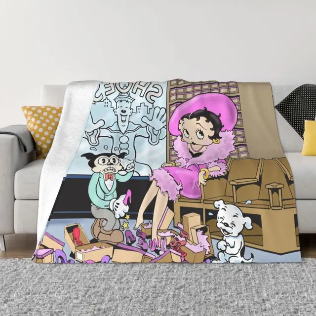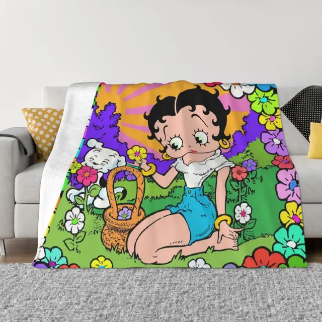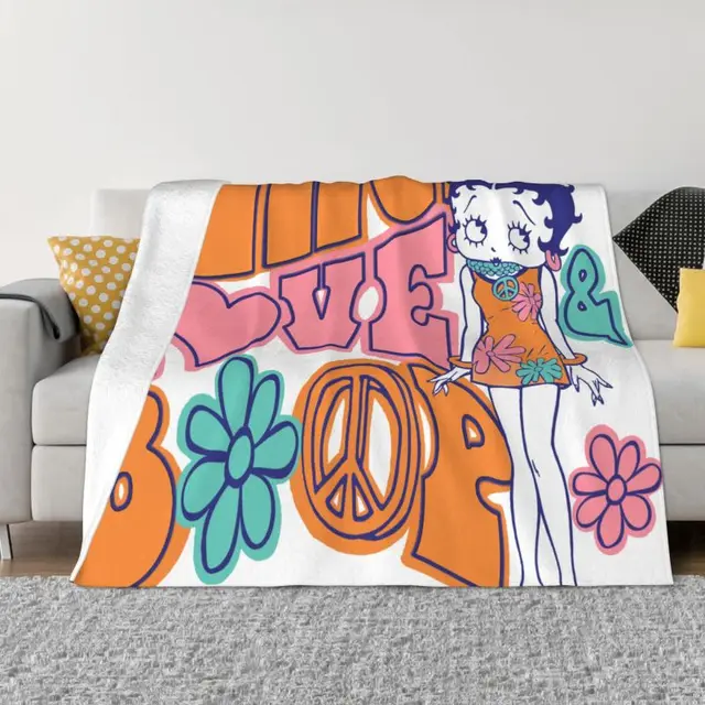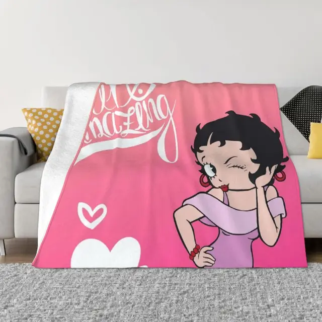 Classic Cartoon Betty Boops Love Blankets Warm Flannel Animation Throw Blanket for Bedding Travel Sofa