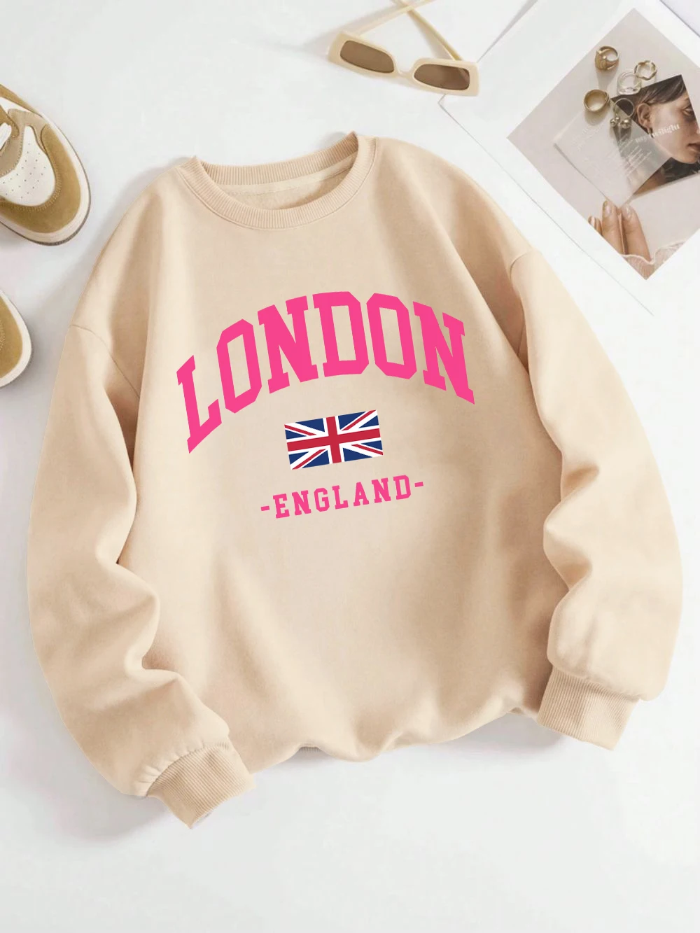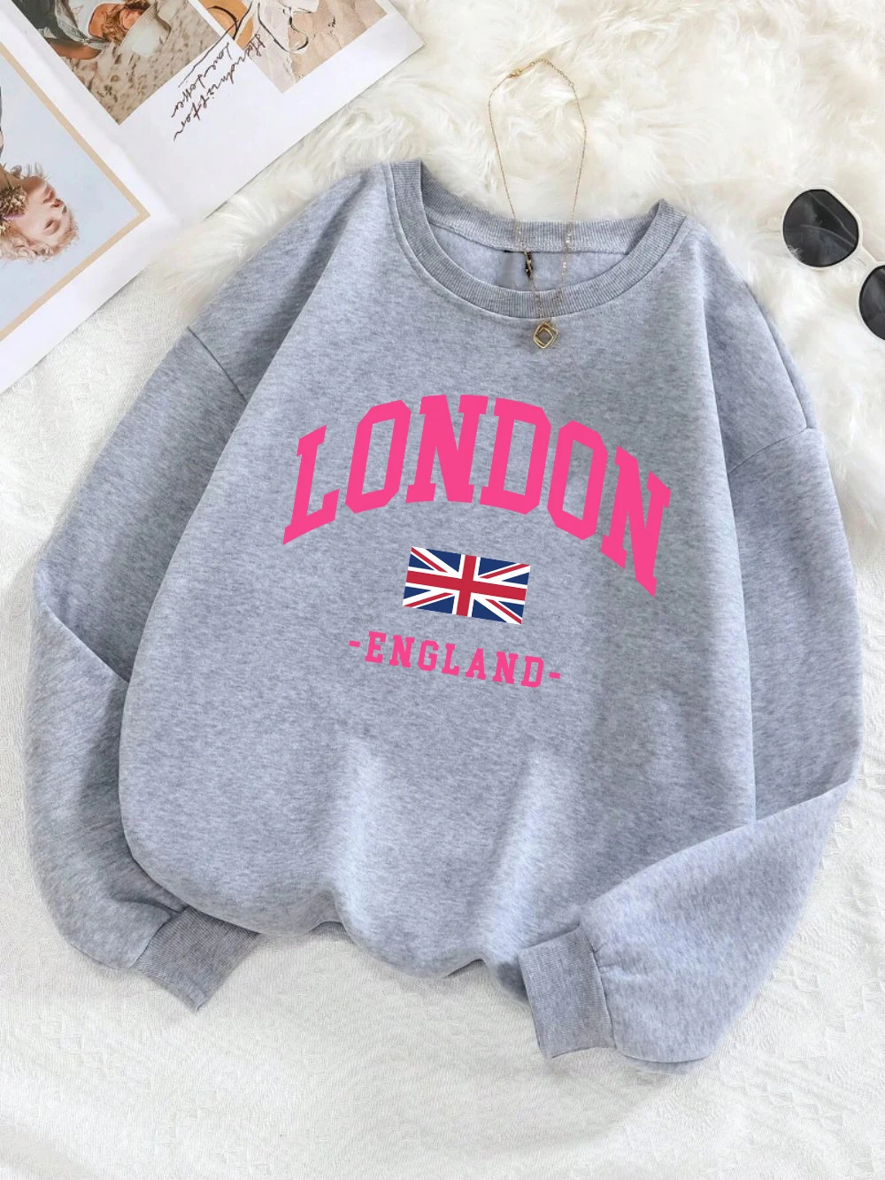 ·±´ø ¿µ±¹ ±¹±â Àμ⠿©¼º ¿îµ¿º¹ °¡À» Crewneck Sportswear Y2K ´À½¼ÇÑ ¿©·¯ °¡Áö ºû±òÀÇ Ç®¿À¹ö ijÁÖ¾ó ÈüÇÕ ÀÇ·ù
