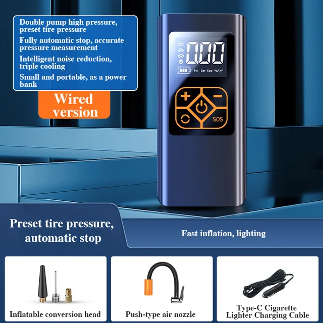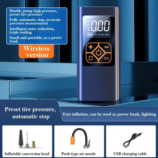 ¿ÀÅä¹ÙÀÌ ÀÚÀü°Å º¸Æ®¿ë Àü±â ¹«¼± ÈÞ´ë¿ë ŸÀÌ¾î ÆØÃ¢±â ÆßÇÁ, ÀÚµ¿Â÷ ŸÀÌ¾î °ø, 4000mAh ÀÚµ¿Â÷ °ø±â ¾ÐÃà±â, 140PSI