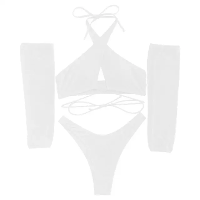 3 Pcs/Set Women Swimsuit Sunscreen Arm Cover Halter Neck Strap Quick Dry Summer Swimwear Set for Beach