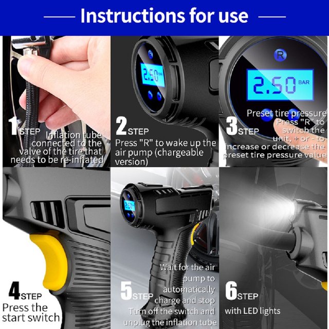 ?01. 150PSI ÃÖ´ë ÀÛµ¿ ¾Ð·Â, 12V ÈÞ´ë¿ë °ø±â ¾ÐÃà±â, ³»Àå LED ÀÛ¾÷ Á¶¸í.