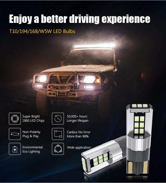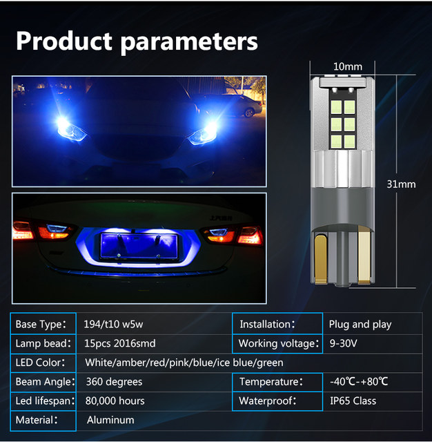 - LED Type: T10 W5W Led bulbs