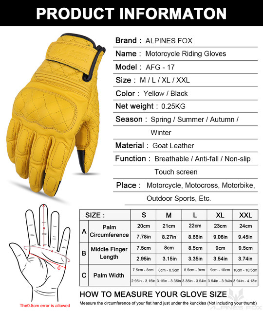 Note:This link AFG-13 & AFG-17 Gloves size little small,please choose larger size !!!