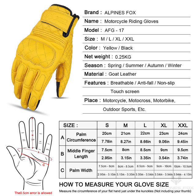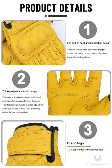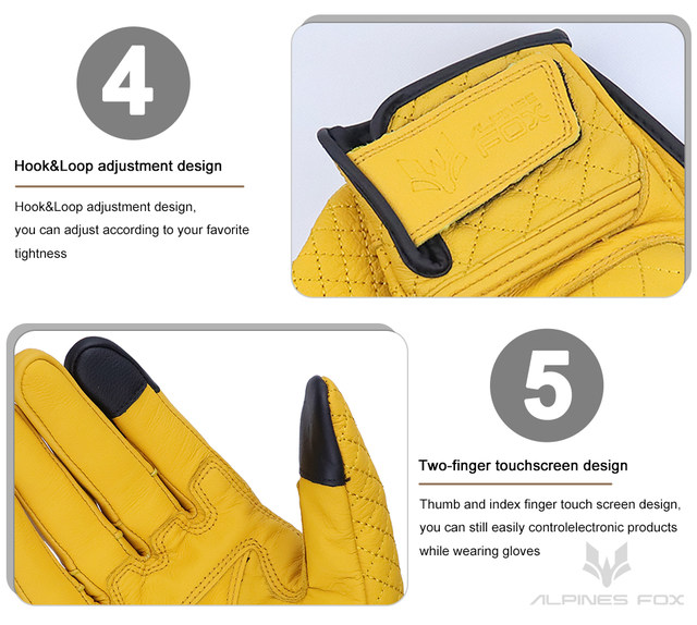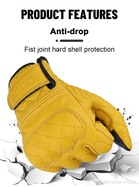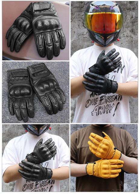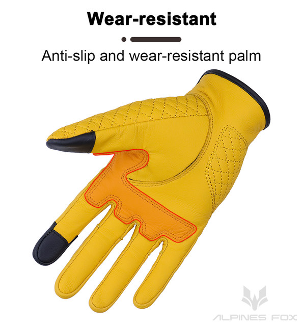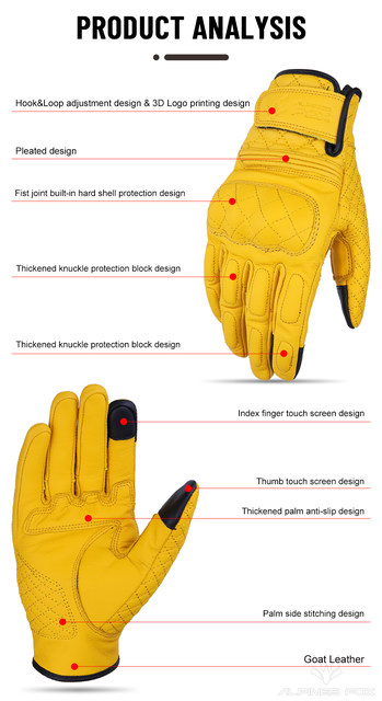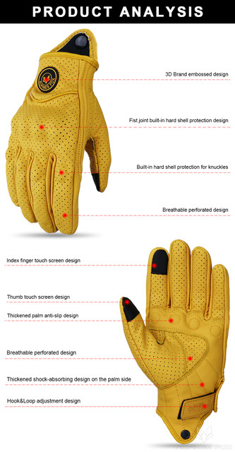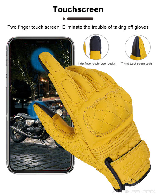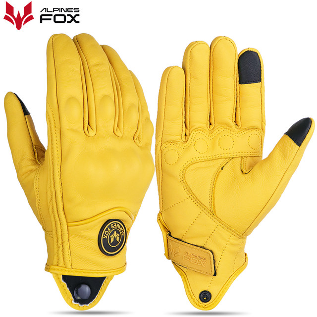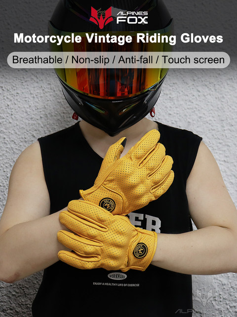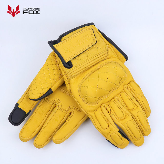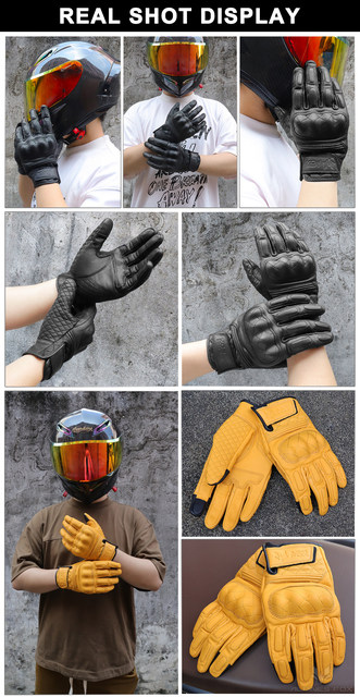 Retro Real Leather Motorcycle Gloves Moto Full Finger Guants Motorcycle Protective Glove Motocross Gloves Yellow