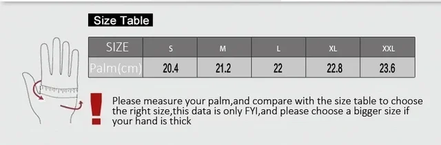 For example, hand width=9cm, circle=22cm choose XL, fit prectct