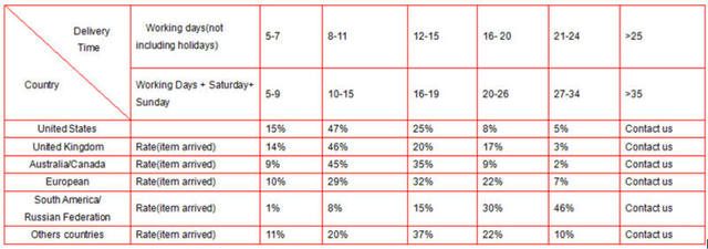 We strive our best to provide you the most reliable,affordable way of shipping service.But sometimes international delivery is highly depended on the courier company and local customs/duties.If you do not receive your item on time,please contact us immediately for further assistance.Thank you for your understanding.