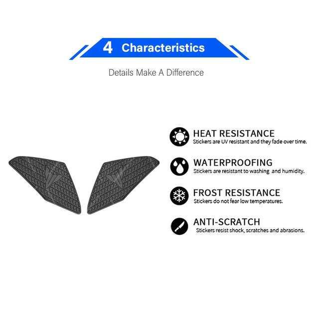 · 상부 연료 탱크 패드는 연료 탱크 (예: 오토바이 재킷의 지퍼) 의 긁힘을 방지 할 수 있습니다