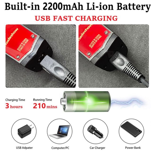 ¡¼300 Min Runtime¡½Cordless/Corded pro hair clippers for men, built-in 2200mAh/3.7V Li-ion battery offers up to 300min long-last clipping time after a 3 Hours fully charged. The hair cutting kit own LCD indicator to show the battery level. Comes with 110-240V USB charging.