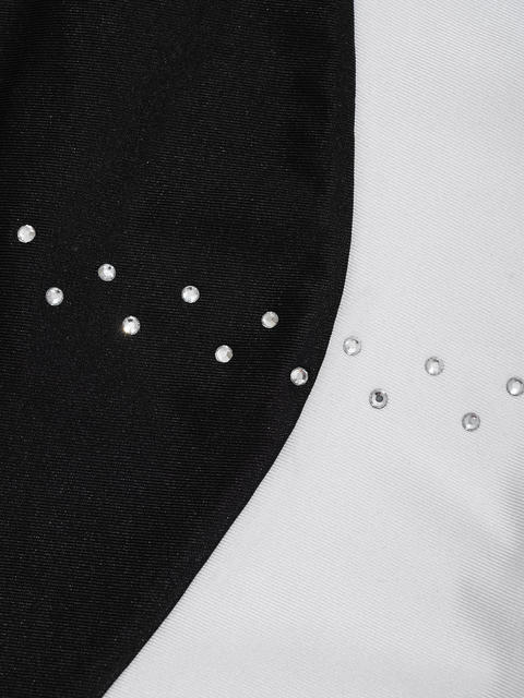 뒷면에 보이지 않는 지퍼 클로저, 쉽게 탈부착이 가능한 복서 하단 스타일, 반짝이는 모조 다이아몬드 장식.