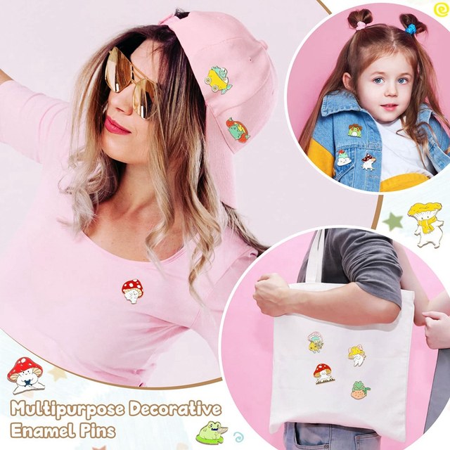Adorabe Design: the enamle pins are designed in pretty patterns, such as dancing mushrooms, frog that plays the guitar, vivid and stylish, full of joyful flavors; Each pin has a butterfly clasp on the back that can be easily removed or worn