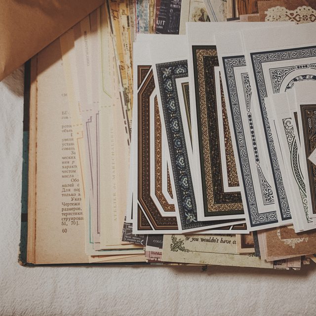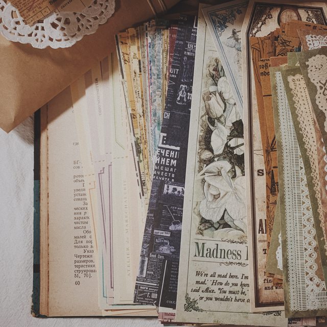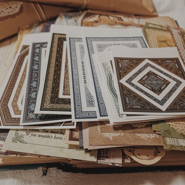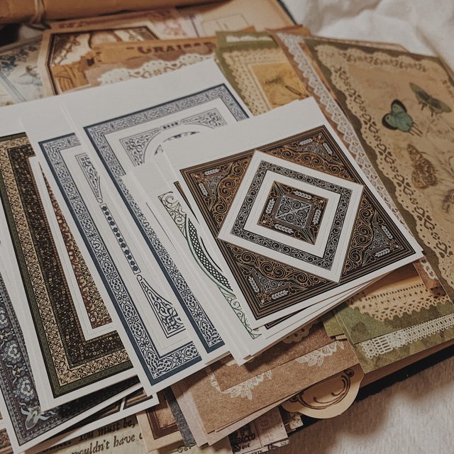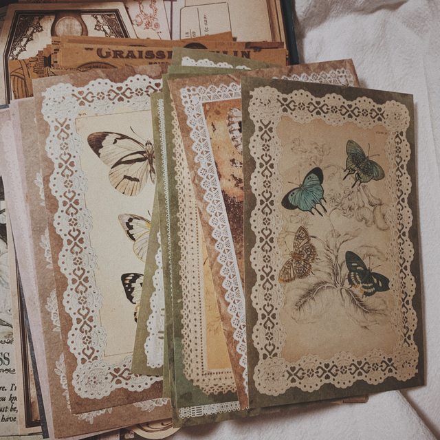 Iincluding retro style materials, most of which are sticky notes+a small number of photos of old European and American architectural figures style stickers style introduction: retro European and American palace pattern notes+thick card note notes+retro collage backing material paper+butterfly style backing material paper+lace book paper+kraft paper making old book feeling notes, etc