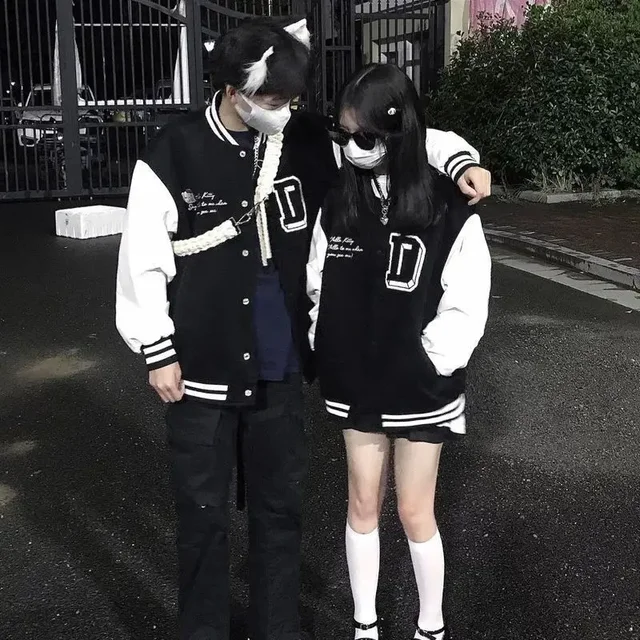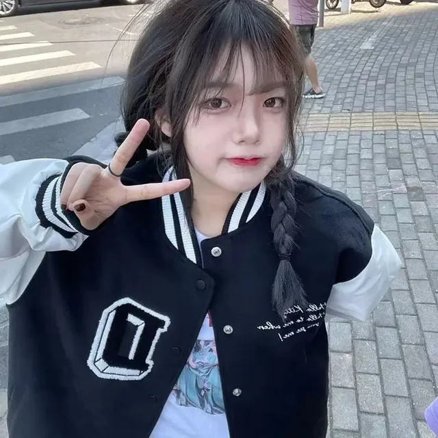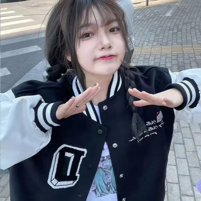 Spring Autumn Skeleton Hello Kitty Patchwork Baseball Jacket Korean Style Loose Casual Unisex Jacket Coat Women Varsity Jacket