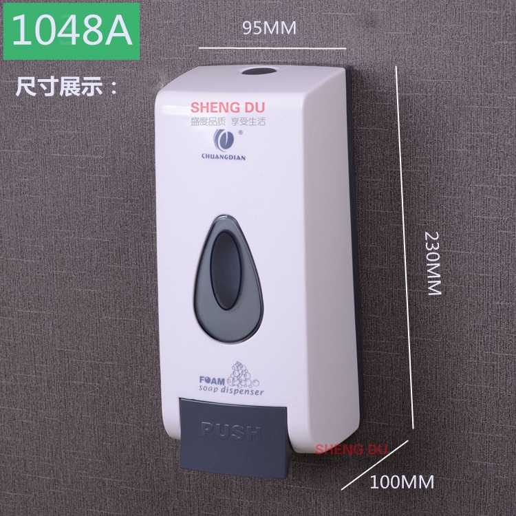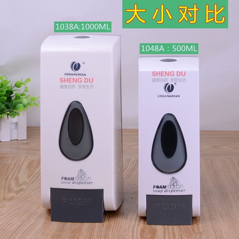 Highlights品牌:创点型号:1048A材质:塑料产地:中国大陆省份:广东省地市:东莞市安装方式:壁挂式颜色分类:500ML1048A,1000ML1038A,洗手液1加仑装,1000ML银色1038B,500ML银色1048B,500ML1048A 内胆+泵头,500ML 1048A泡沫头,1000ml1688A泡沫皂液器体积(ml):500表面工艺:阳极氧化是否自动感应:否[ 500ML1048A ]